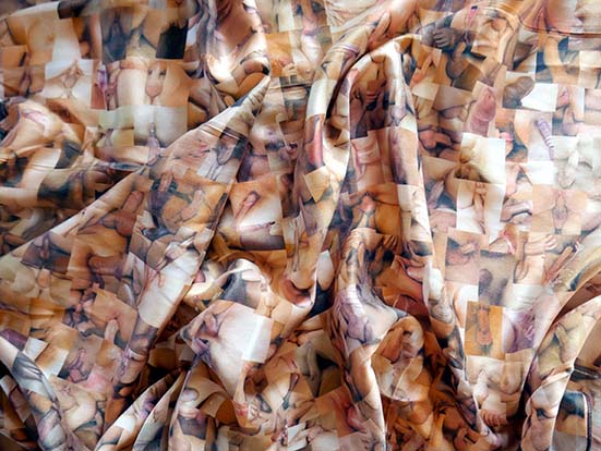 Foulard constitué de milliers d´images porno, jeu avec le fait de cacher et dévoiler.